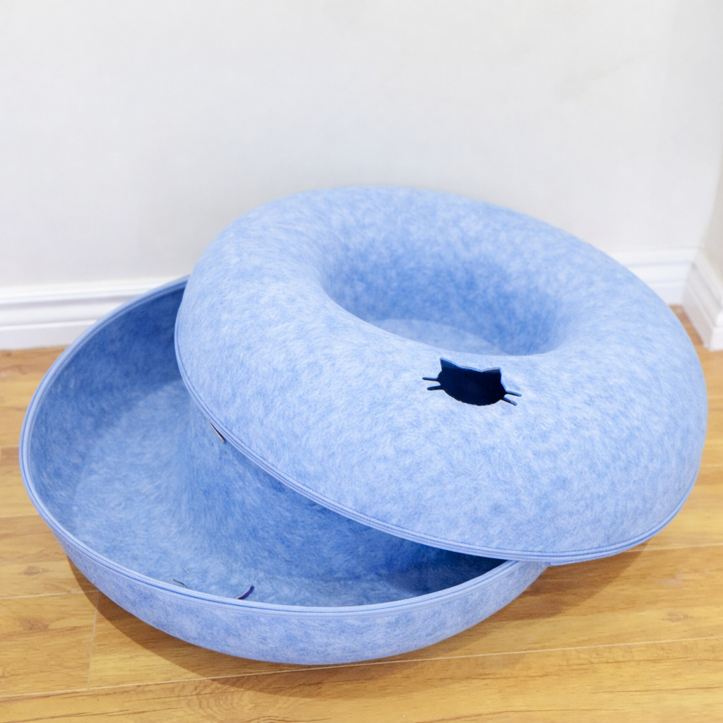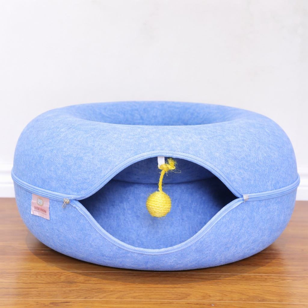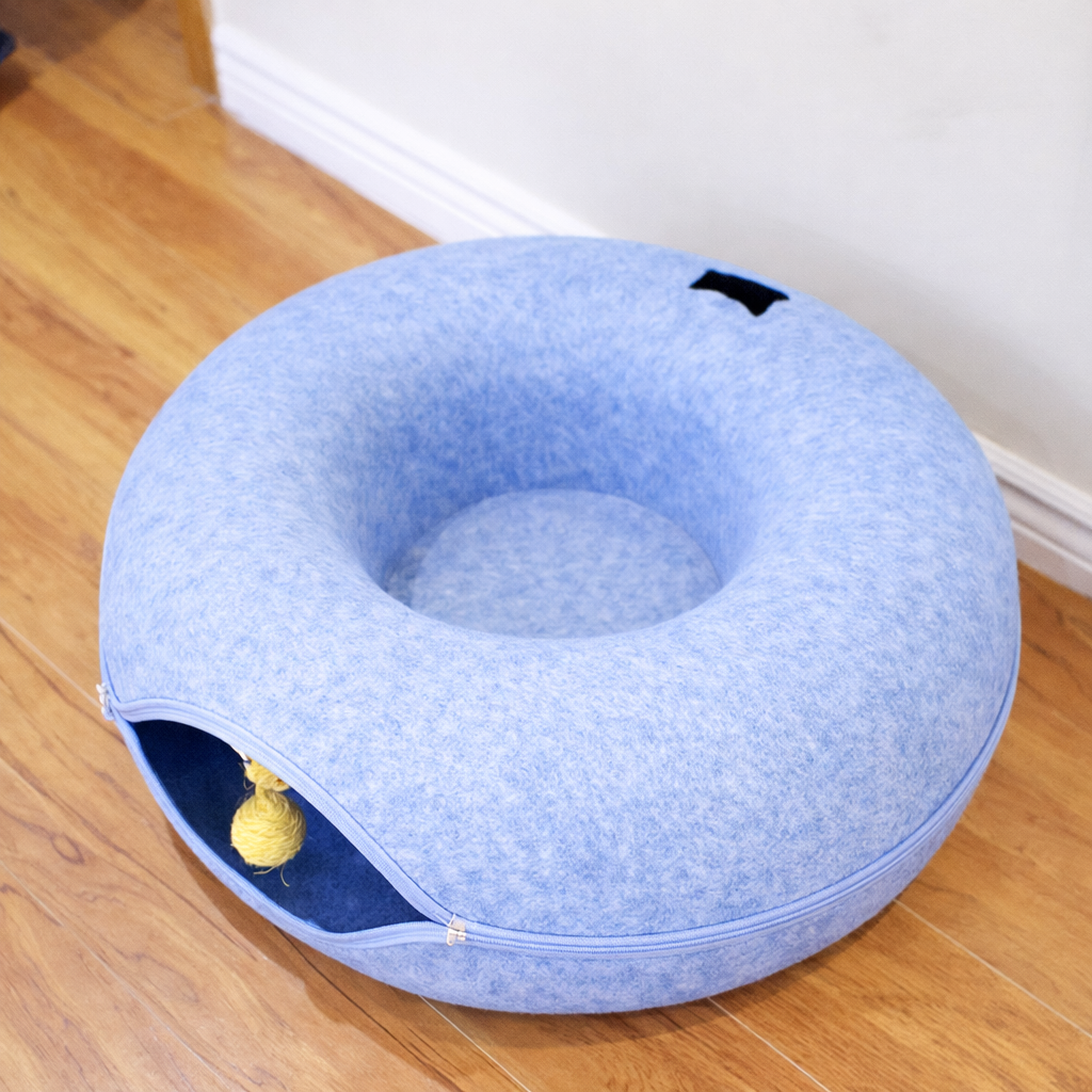 A playful cat bed tunnel that combines comfort with interactive fun.